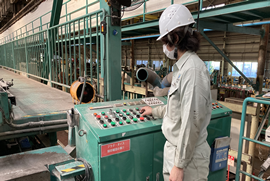 入社後 1か月間の研修の後、製造課に配属となり 加工機械の操作や、製品の搬送等の作業を行っています。